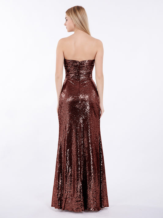 Babaroni ClaraClara Sin Tirante Hasta El Topillo Lentejuelas Vestido Terracota Tallas Grandes