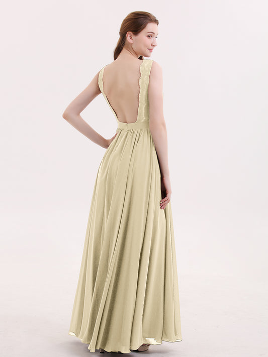 9% OFFBabaroni ConstanceConstance Encaje Y Gasa Sexy Vestido Con Corte Largo Champán Tallas Grandes