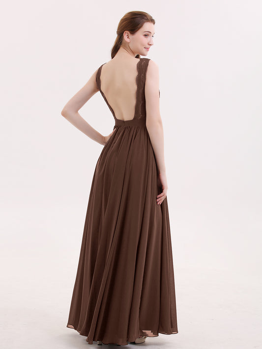 9% OFFBabaroni ConstanceConstance Encaje Y Gasa Sexy Vestido Con Corte Largo Chocolate Tallas Grandes