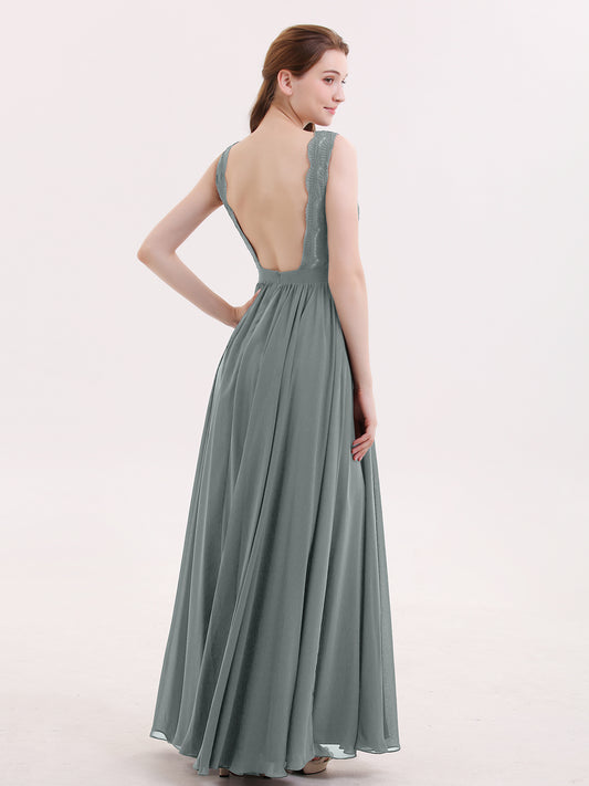8% OFFBabaroni ConstanceConstance Encaje Y Gasa Sexy Vestido Con Corte Largo Gris Acero