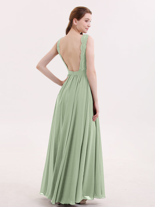 9% OFFBabaroni ConstanceConstance Encaje Y Gasa Sexy Vestido Con Corte Largo Salvia Polvorienta Tallas Grandes