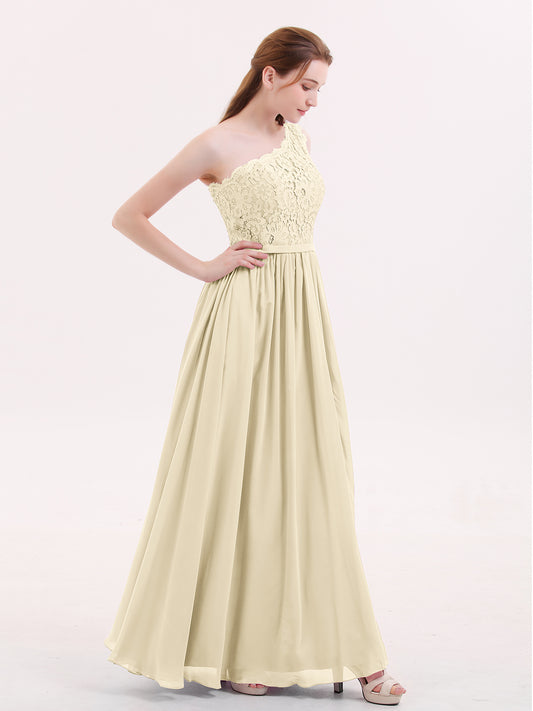 Babaroni CrystalCrystal Un Hombro Gasa Y Encaje Vestido Con Apertura Champán Tallas Grandes