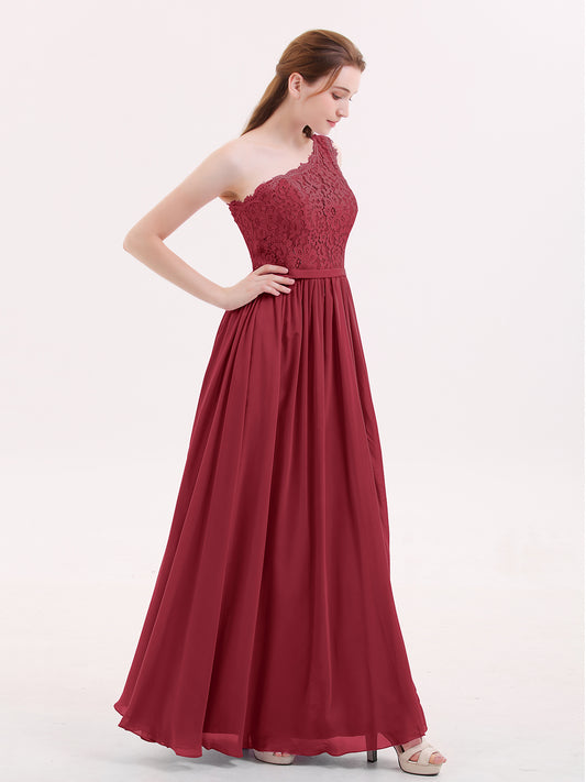 Babaroni CrystalCrystal Un Hombro Gasa Y Encaje Vestido Con Apertura Cabernet