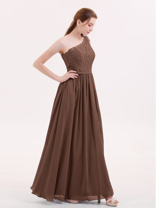 Babaroni CrystalCrystal Un Hombro Gasa Y Encaje Vestido Con Apertura Chocolate