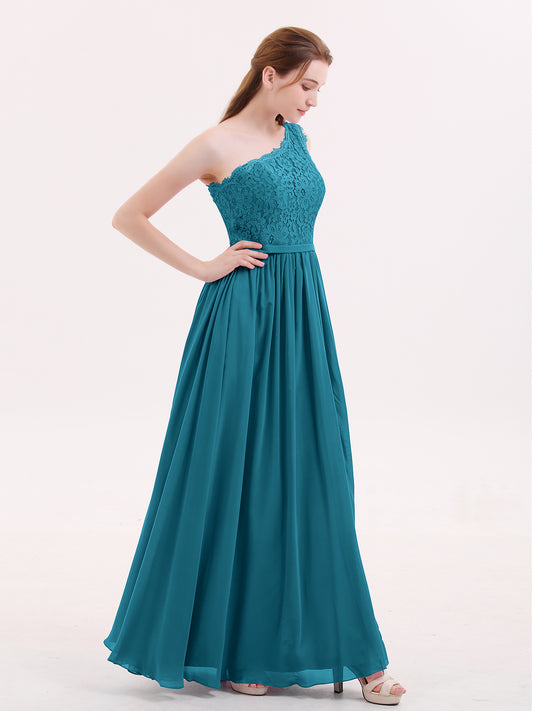 Babaroni CrystalCrystal Un Hombro Gasa Y Encaje Vestido Con Apertura Azul Océano Tallas Grandes