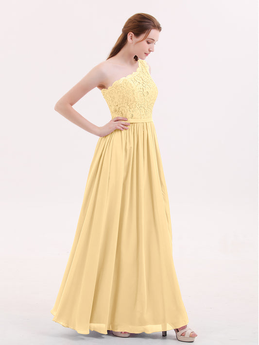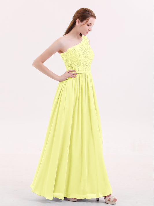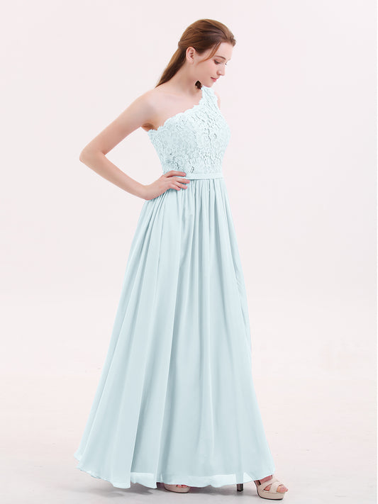 Babaroni CrystalCrystal Un Hombro Gasa Y Encaje Vestido Con Apertura Narciso