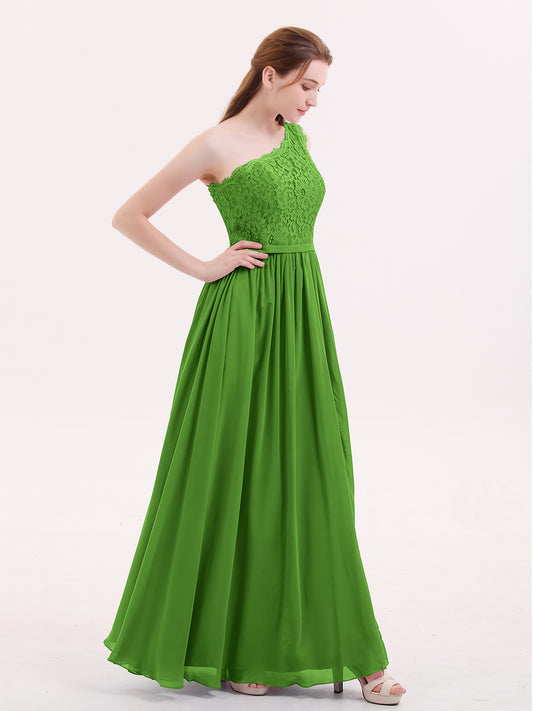Babaroni CrystalCrystal Un Hombro Gasa Y Encaje Vestido Con Apertura Musgo Tallas Grandes