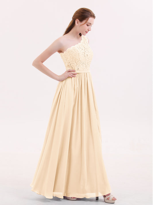 Babaroni CrystalCrystal Un Hombro Gasa Y Encaje Vestido Con Apertura Oro Tallas Grandes