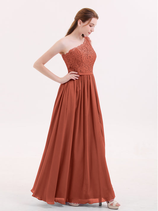Babaroni CrystalCrystal Un Hombro Gasa Y Encaje Vestido Con Apertura Marrón Tallas Grandes