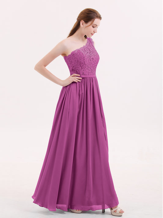 Babaroni CrystalCrystal Un Hombro Gasa Y Encaje Vestido Con Apertura Orquídea