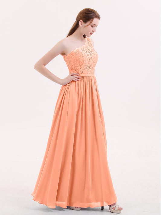 Babaroni CrystalCrystal Un Hombro Gasa Y Encaje Vestido Con Apertura Papaya