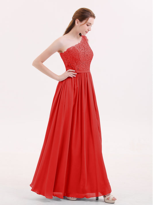 Babaroni CrystalCrystal Un Hombro Gasa Y Encaje Vestido Con Apertura Rojo Tallas Grandes