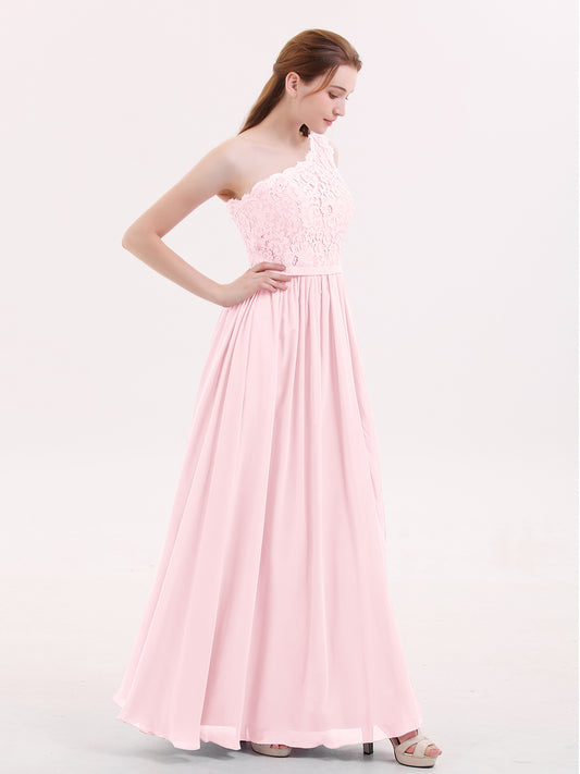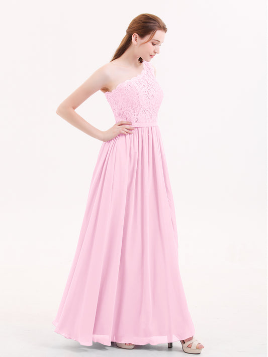Babaroni CrystalCrystal Un Hombro Gasa Y Encaje Vestido Con Apertura Rosa Claro Tallas Grandes