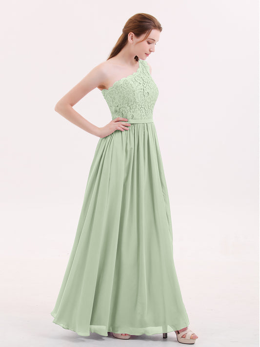 Babaroni CrystalCrystal Un Hombro Gasa Y Encaje Vestido Con Apertura Salvia Polvorienta