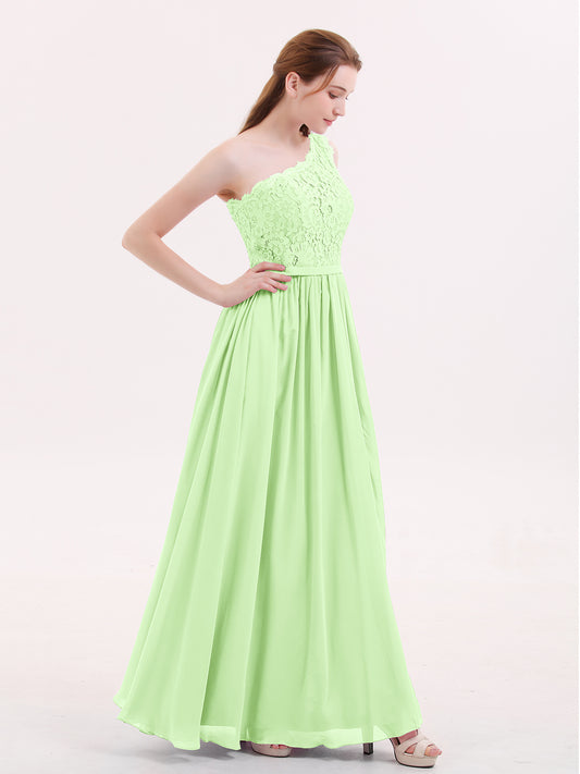 Babaroni CrystalCrystal Un Hombro Gasa Y Encaje Vestido Con Apertura Salvia