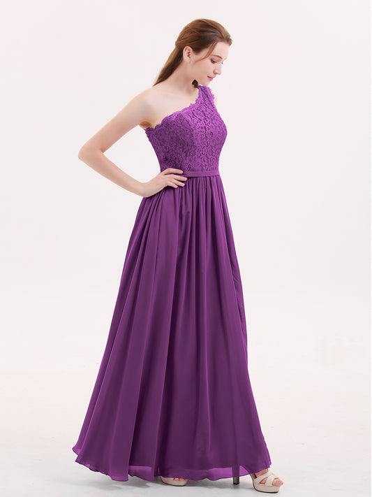 Babaroni CrystalCrystal Un Hombro Gasa Y Encaje Vestido Con Apertura Uva Tallas Grandes