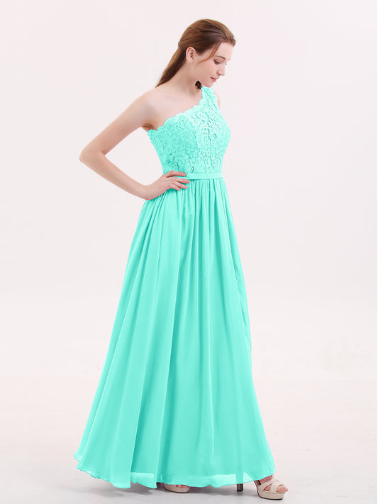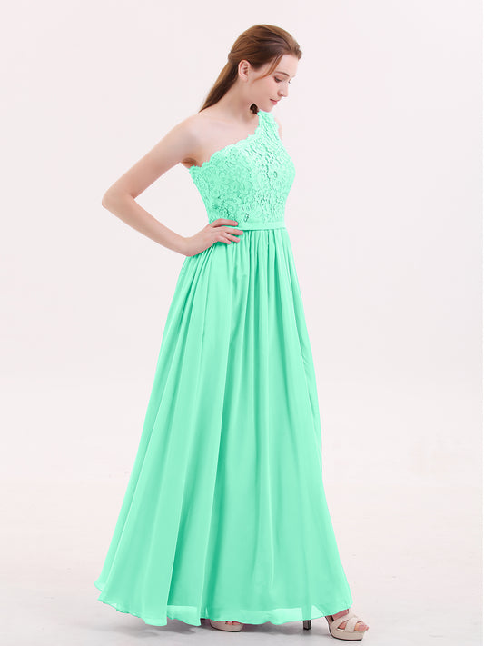 Babaroni CrystalCrystal Un Hombro Gasa Y Encaje Vestido Con Apertura Verde Menta Tallas Grandes