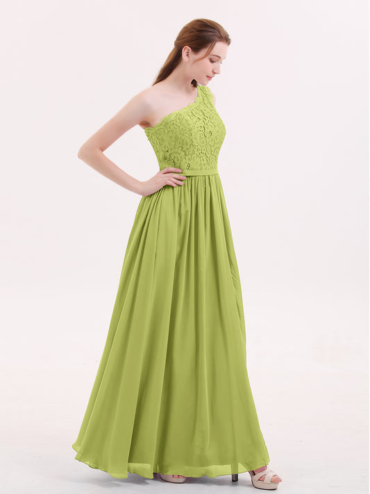 Babaroni CrystalCrystal Un Hombro Gasa Y Encaje Vestido Con Apertura Verde Lima Tallas Grandes