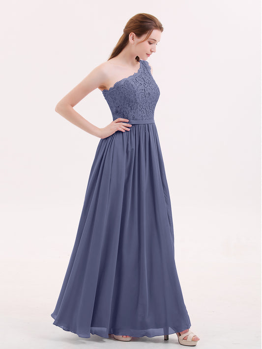 Babaroni CrystalCrystal Un Hombro Gasa Y Encaje Vestido Con Apertura Uva