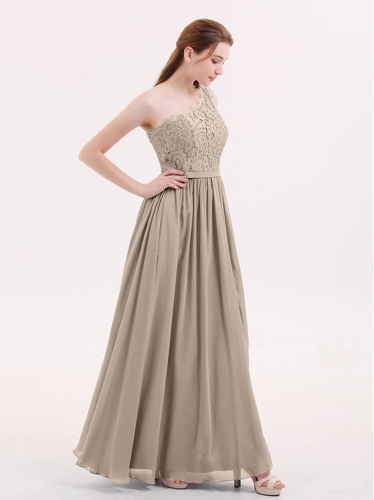 Babaroni CrystalCrystal Un Hombro Gasa Y Encaje Vestido Con Apertura Topo Tallas Grandes