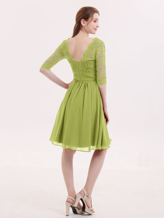 Babaroni AlexiaAlexia Encaje Y Gasa Vestido Corto Con Media Manga Verde Lima