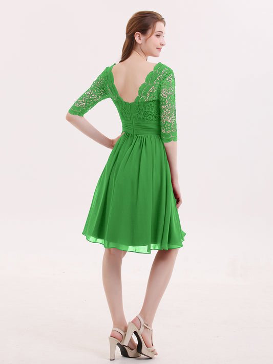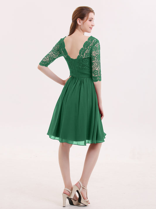 Babaroni AlexiaAlexia Encaje Y Gasa Vestido Corto Con Media Manga Verde Oscuro