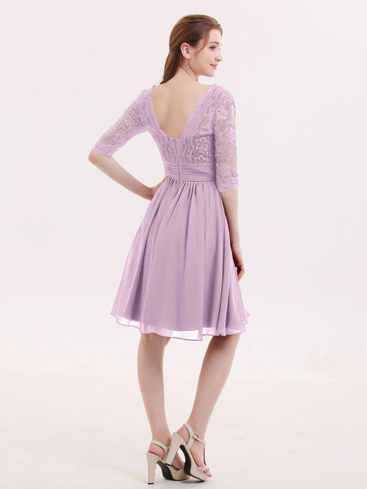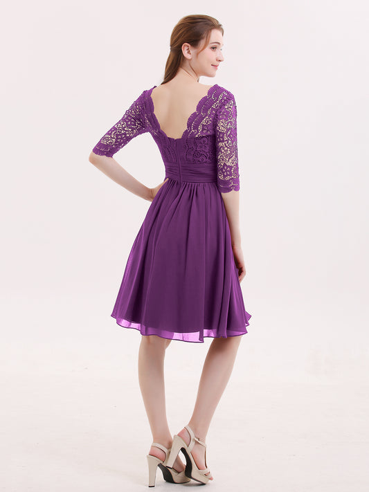 Babaroni AlexiaAlexia Encaje Y Gasa Vestido Corto Con Media Manga Uva