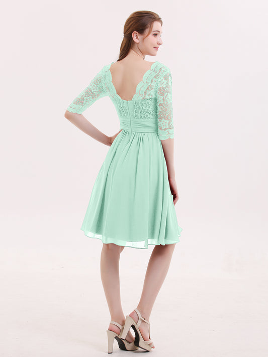 Babaroni AlexiaAlexia Encaje Y Gasa Vestido Corto Con Media Manga Verde Menta