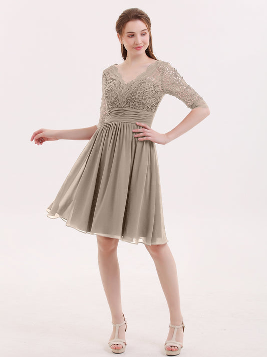 Babaroni AlexiaAlexia Encaje Y Gasa Vestido Corto Con Media Manga Verde Oliva Tallas Grandes