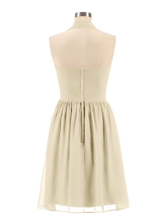 Babaroni DelphineDelphine Cabestro Novio Gasa Vestidos Cortos Champán