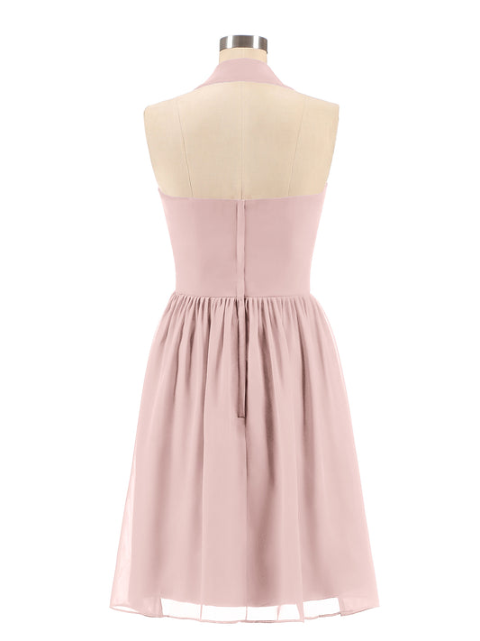 Babaroni DelphineDelphine Cabestro Novio Gasa Vestidos Cortos Rosa Polvoriento Tallas Grandes