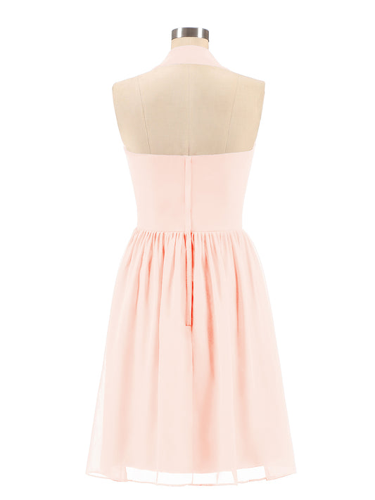 Babaroni DelphineDelphine Cabestro Novio Gasa Vestidos Cortos Rosa Claro Tallas Grandes
