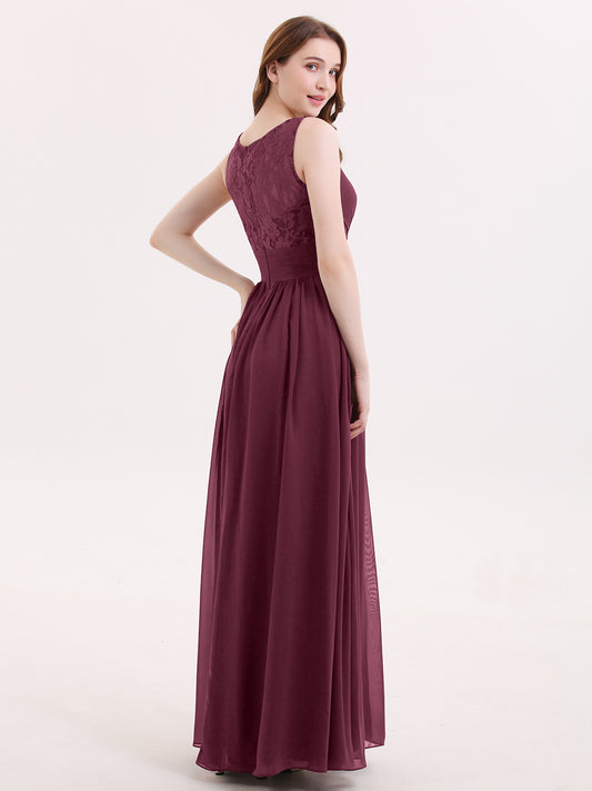 AgotadoBabaroni AdalynAdalyn Escote En V Gasa Y Encaje Maxi Corte De Dama De Honor Cabernet