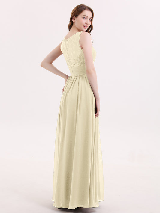 Babaroni AdalynAdalyn Escote En V Gasa Y Encaje Maxi Corte De Dama De Honor Champán