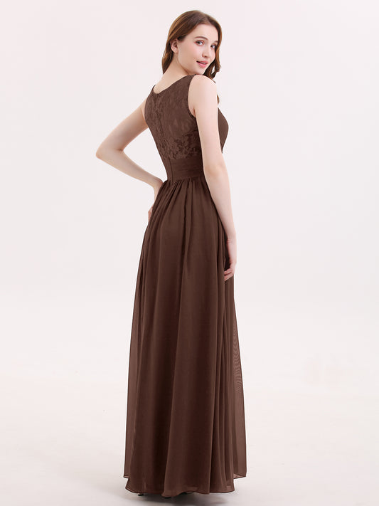 Babaroni AdalynAdalyn Escote En V Gasa Y Encaje Maxi Corte De Dama De Honor Chocolate-Tallas Grandes