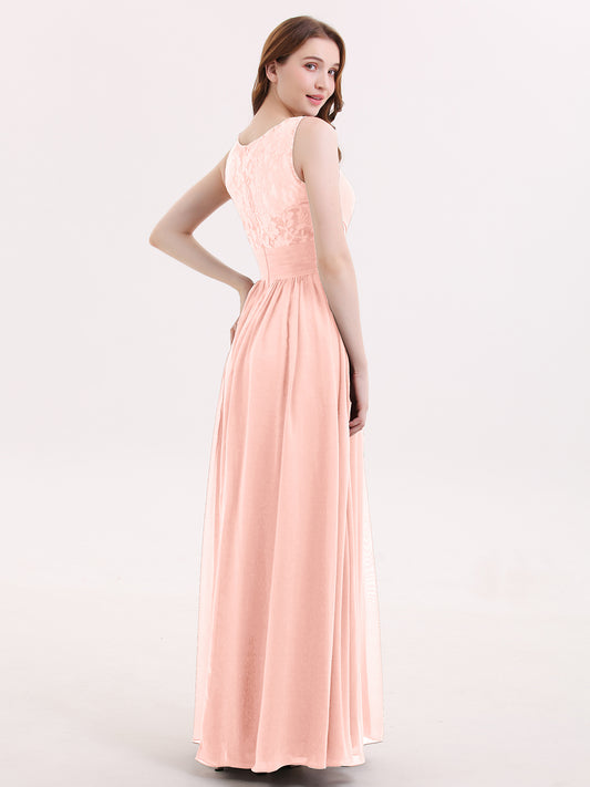Babaroni AdalynAdalyn Escote En V Gasa Y Encaje Maxi Corte De Dama De Honor Crepúsculo