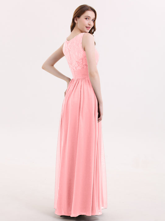 Babaroni AdalynAdalyn Escote En V Gasa Y Encaje Maxi Corte De Dama De Honor Coral-Tallas Grandes
