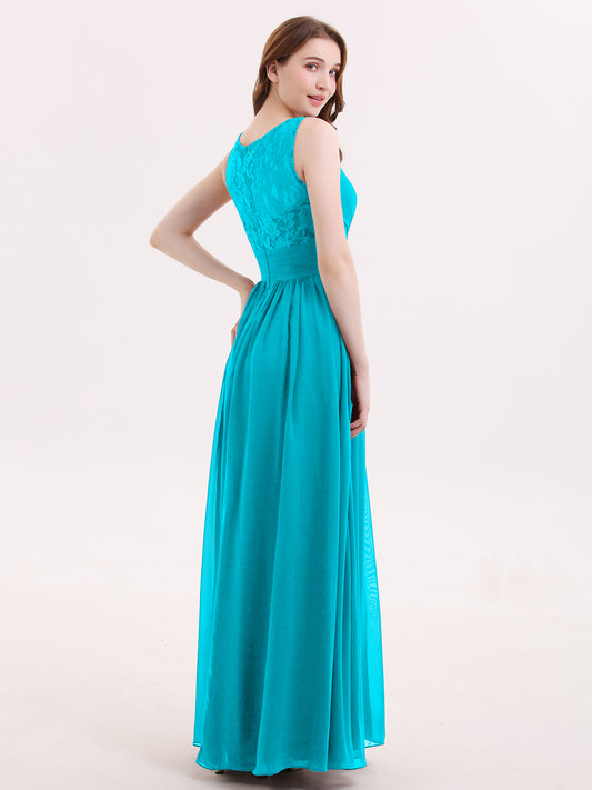 Babaroni AdalynAdalyn Escote En V Gasa Y Encaje Maxi Corte De Dama De Honor Jade