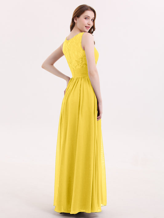 Babaroni AdalynAdalyn Escote En V Gasa Y Encaje Maxi Corte De Dama De Honor Caléndula