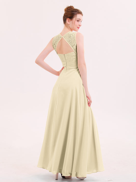 Babaroni DioneDione Espejismo Encaje Y Gasa Vestido Con Apertura Champán
