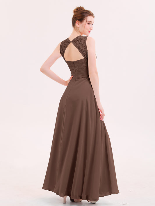 Babaroni DioneDione Espejismo Encaje Y Gasa Vestido Con Apertura Chocolate