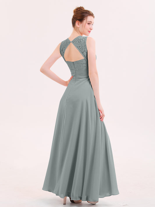 Babaroni DioneDione Espejismo Encaje Y Gasa Vestido Con Apertura Gris Acero Tallas Grandes