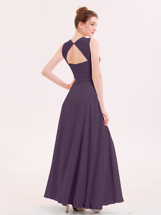 Babaroni DioneDione Espejismo Encaje Y Gasa Vestido Con Apertura Ciruela