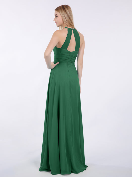 Babaroni DorisDoris Cabestro Gasa Maxi Vestido De Dama De Honor Verde Oscuro Tallas Grandes