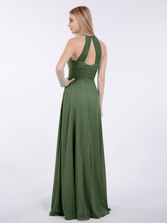 Babaroni DorisDoris Cabestro Gasa Maxi Vestido De Dama De Honor Verde Oliva Tallas Grandes