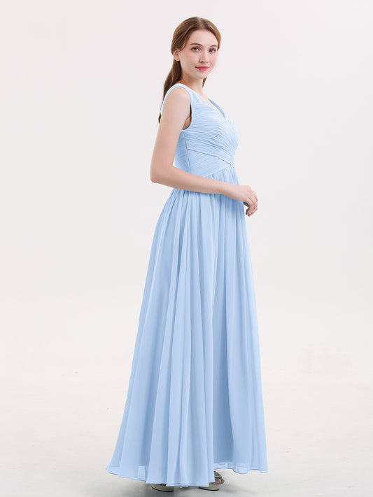 Babaroni EasterEaster Escote En V Maxi Gasa Vestidos Con Cremallera En Espalda Azul Cielo Tallas Grandes