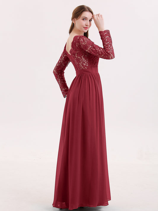 Babaroni AlinaAlina Escote En V Encaje Y Gasa Vestido Con Largas Mangas Borgoña Tallas Grandes