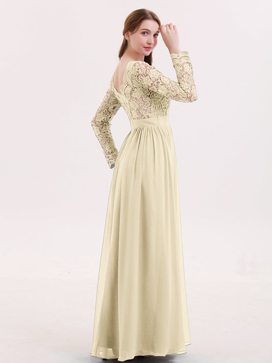 Babaroni AlinaAlina Escote En V Encaje Y Gasa Vestido Con Largas Mangas Champán Tallas Grandes