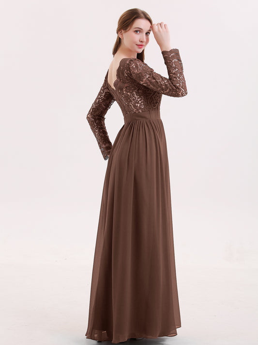 Babaroni AlinaAlina Escote En V Encaje Y Gasa Vestido Con Largas Mangas Chocolate Tallas Grandes