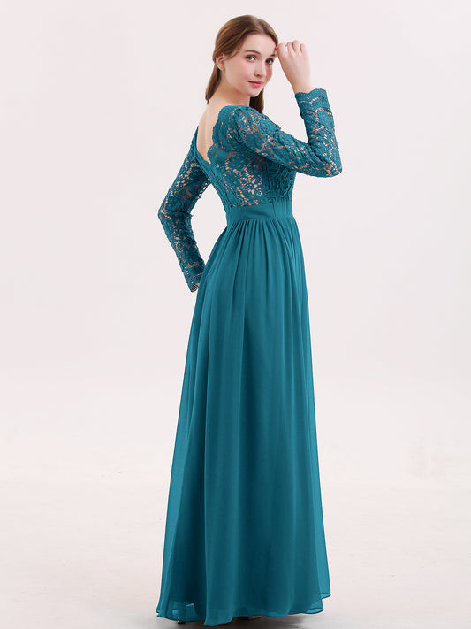 Babaroni AlinaAlina Escote En V Encaje Y Gasa Vestido Con Largas Mangas Azul Océano Tallas Grandes